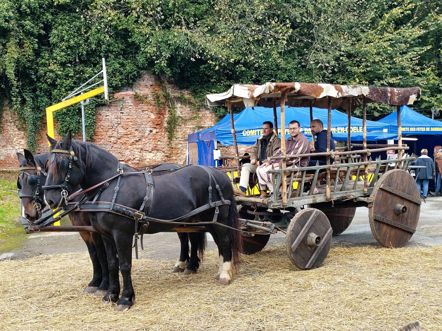 Nos 12 chevaux et 4 bœufs sont pansés, équipés, livrés et repris à l’endroit que vous nous indiquez. Ils sont bien formés, expérimentés et adaptés à chaque hippomobile. Notre cavalier M. Cassez est un cocher confirmé, qui a appris à manier les chevaux de trait sur l’exploitation agricole. Avec lui, vous aurez un bon guide.